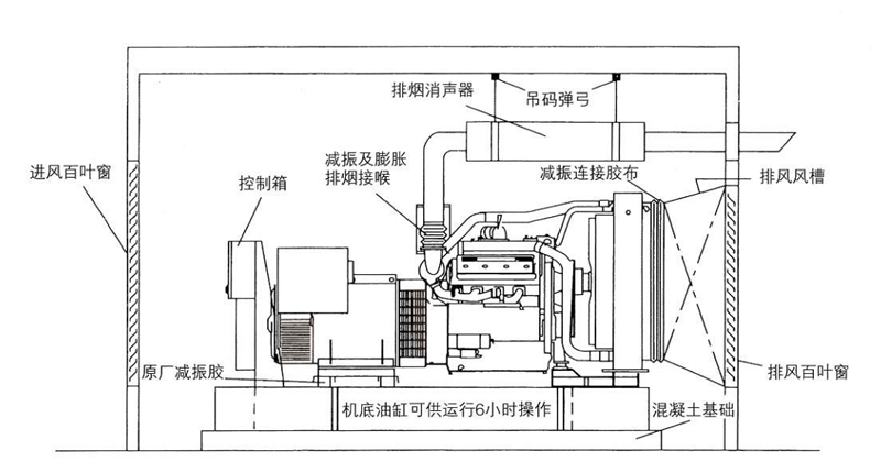 2、柴油发电机组应安装在平整的混凝土地面上,同时确保机房通风散热效果良好;