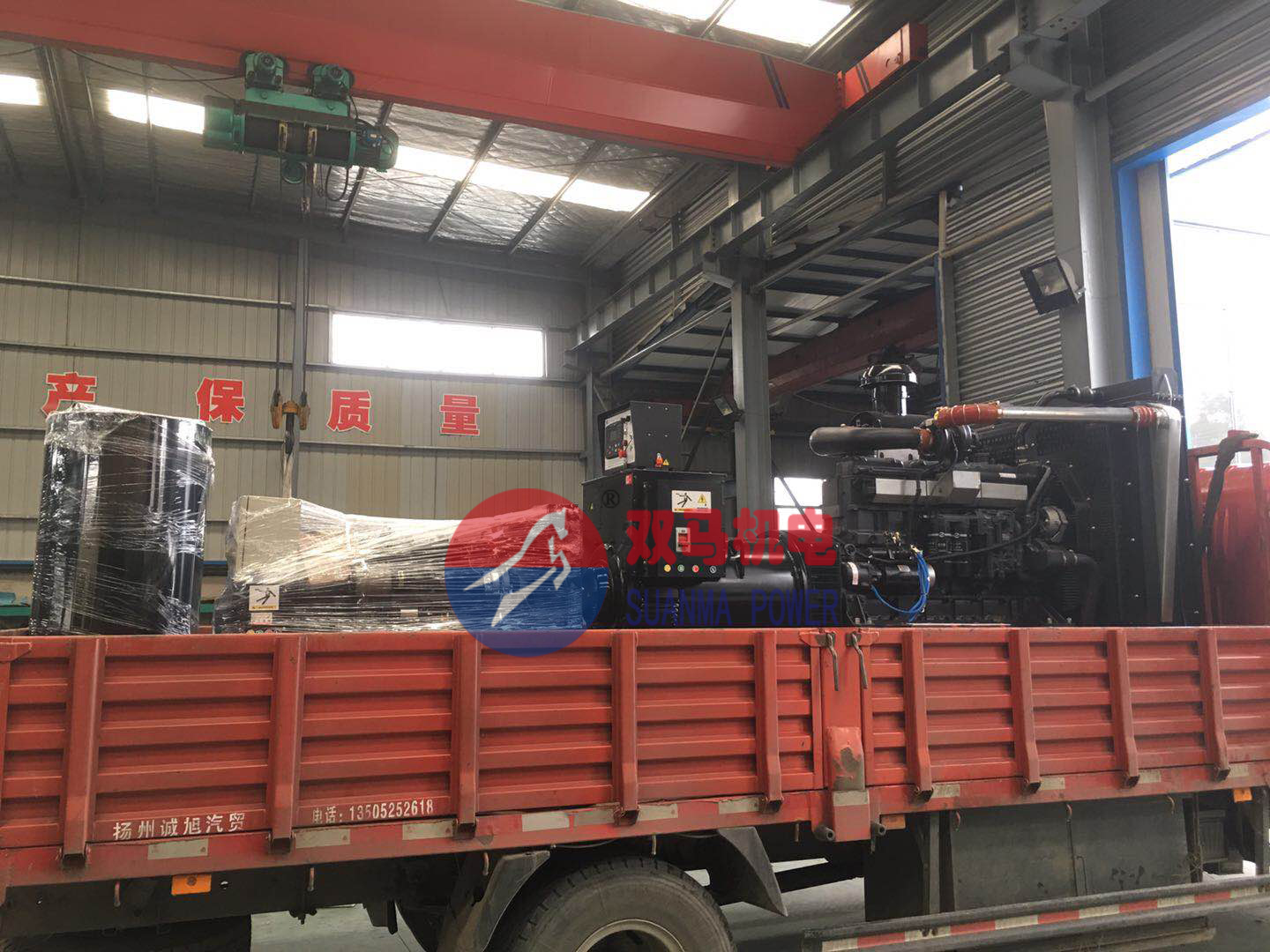 南通海安家具厂客户因工厂搬迁至小洋口化工园区,应消防部门要求必须配套备用已经电源,因客户厂区比较大,有2个独立的供电变压器,一台发电机不能满足现场的需要,再与我公司工程师沟通对接中,最终确认柴油发电机方案,采用1台300KW上柴发电机作为生产和消防备用电源,一台40KW潍柴发电机作为后勤保障电源!确保在任何情况下不影响工程正常运行,现柴油发电机生产完成,装车发货!
