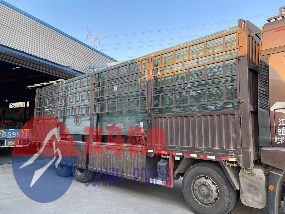 两台静音发电机组,总长将近十米,装了满满一车,直送客户现场。