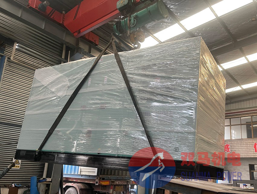 老客户订购的两台金年会金字招牌信誉至上静音柴油发电机组今日装柜。该两台发电机组是500kw的,500kw静音发电机组的高度和宽度和柜体的尺寸基本一致,